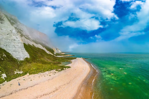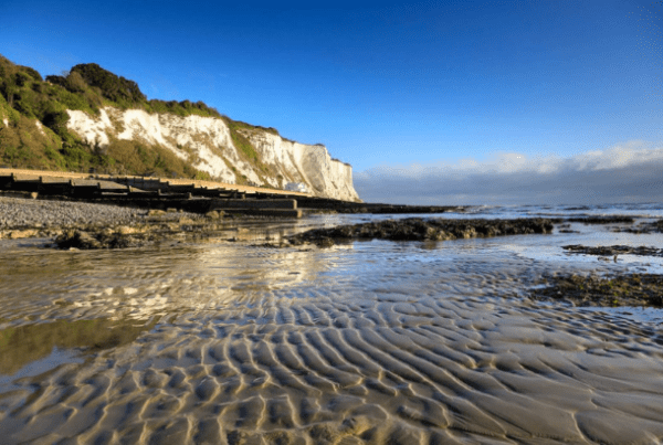 A quiet, unspoilt bay beneath the White Cliffs, ideal for coastal walks and sea views.
